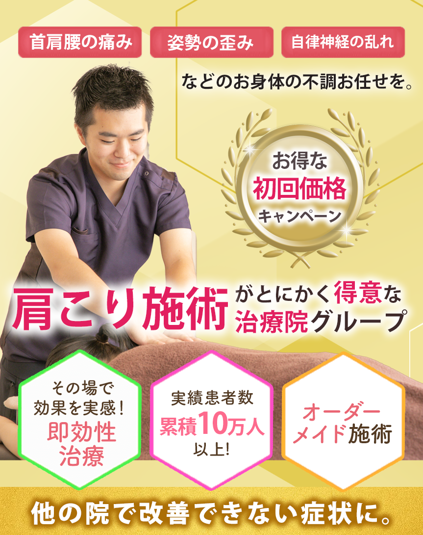 当院では、肩や首の筋肉の状態を確認し、血流改善や筋肉の緊張を緩める施術を行っています。肩こりでお困りの方は、ぜひ一度ご相談ください。