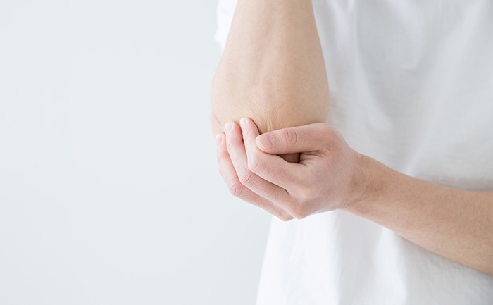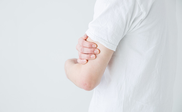 肘の外側で骨同士がぶつかって、骨や軟骨が剥がれたり痛んだりします。